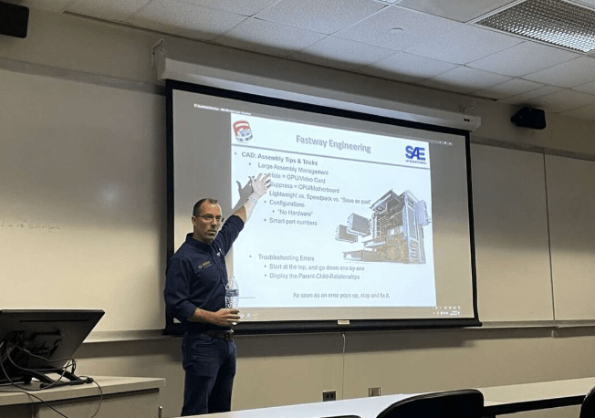 NIU hosted James Shaw of Fastway Engineering for a presentation on project management and improving design techniques through CAD, FEA, and CFD. We’re excited to see how the NIU teams apply those principles to their Formula SAE projects to get them to the podium at the annual competition in May.