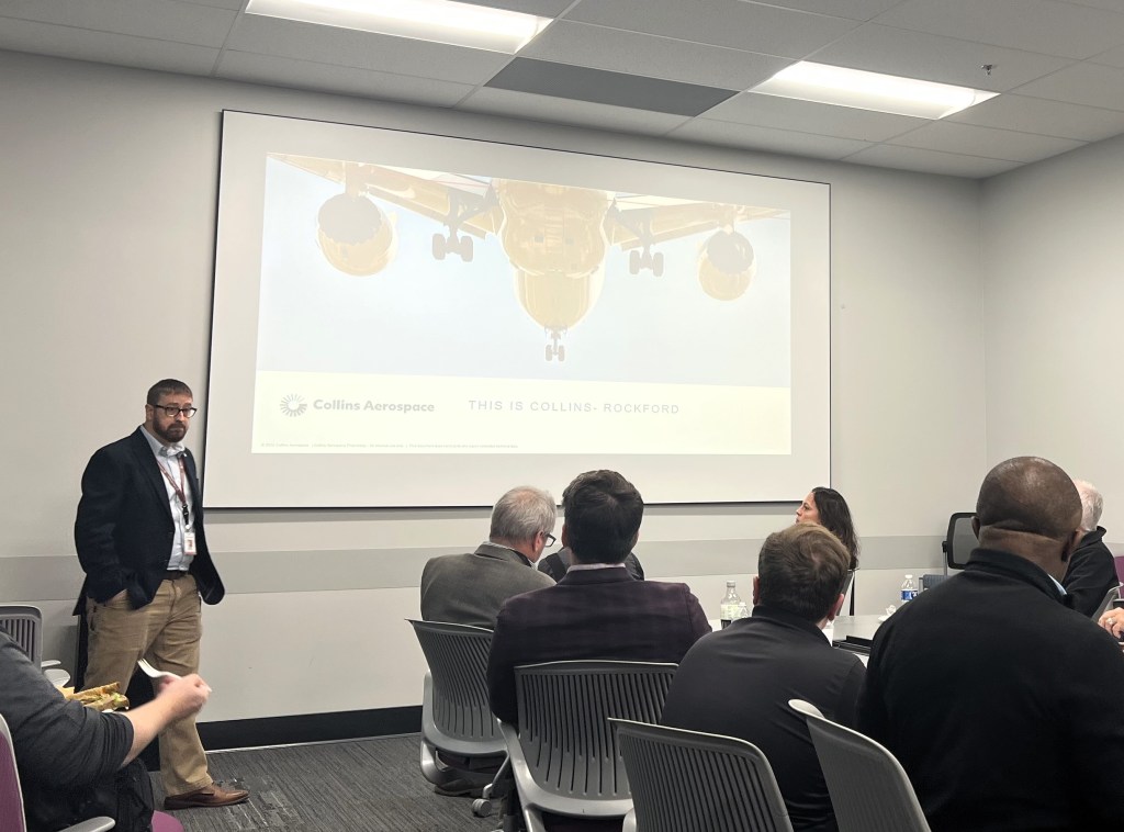 Collins Aerospace hosted SAE Chicago and local SAE section members at their facility in Rockford, IL. The event included a tour of Plant 6 including the Collins Wall of History, assembly, production testing, and the development testing areas. Along the way, various subject matter experts spoke on a variety of technologies including the Ram Air Turbine (RAT), airplane power systems, wind tunnel testing, production and assembly methods, and advanced propulsion systems for reduced aircraft emissions.